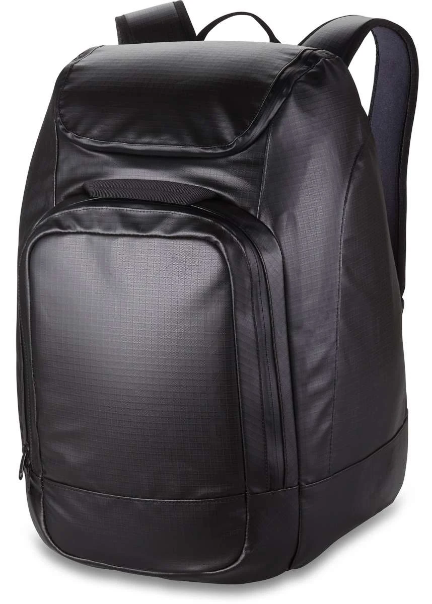 The 50 liter Boot Pack has several roomy pockets for organizing and protecting your gear in transit. The dedicated helmet and goggle pocket is padded to protect against dings or scratches, and the zippered front cargo pocket is the perfect place to keep gloves, hats, tuning kits or an extra baselayer. The boot compartment stows ski or snowboard boots separately, and with easy access through the zippered rear-entry access panel. Securely transports your entire kit from the gear closet, to the car, to the resort, and back.